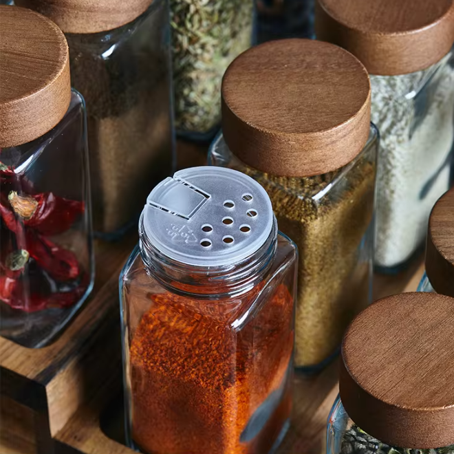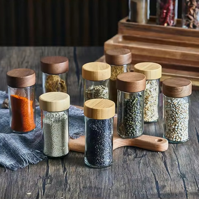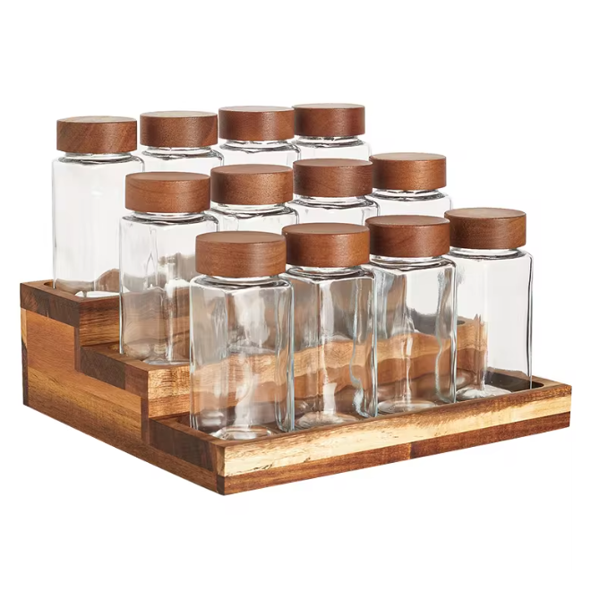Item Name: Spice Jars With Bamboo Lids Set Rack