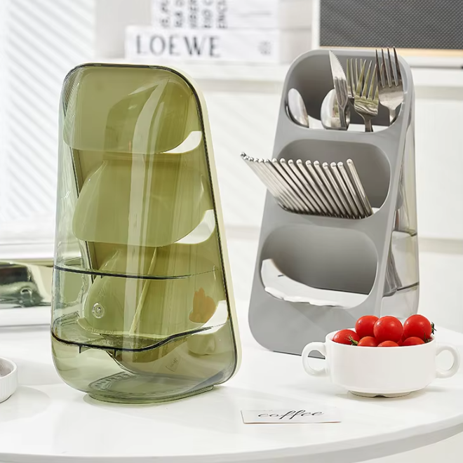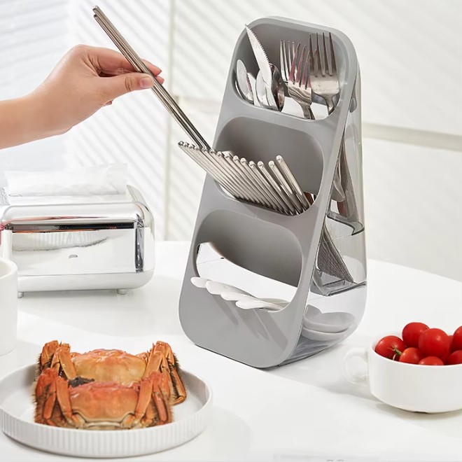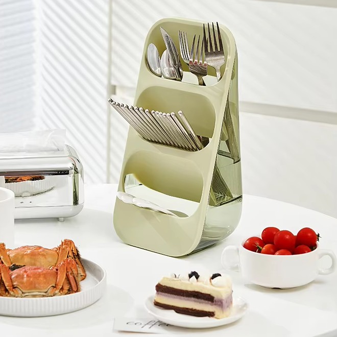 Feature: Three space forcutlery storage, Drain design at the bottom, Drainable.